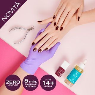 Come un semipermanente ma adatto anche alle unghie più fragili o che si sfaldano. Non serve limare la superficie dell'unghia.